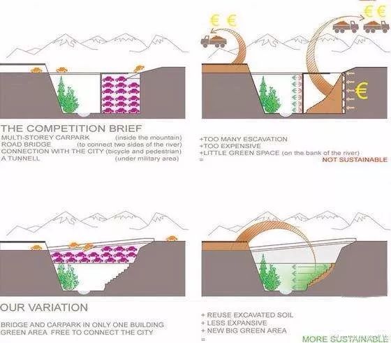 “在山间建立一座桥梁式的多层停车场”是由意大利建筑师AngeloSalamone提交的创新方案。该设计在莫埃纳市政府举办的Longea(意大利旅游胜地)停车场国际设计大赛中获得二等奖。可持续性设计为当地交通提供了一个优化的选择方案,旨在建立一座乌托邦式的停车场结构,一处从经济、社会和环境各个角度均堪称完美的场所,以此鼓励旅游业的可持续发展。