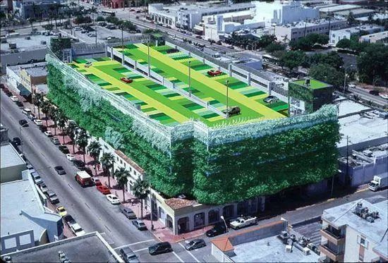 “鸟巢”(国家体育场)的设计公司Herzog & de Meuron在美国迈阿密的林肯大道上创造了最时尚的停车场“林肯大道1111号”,在2010年完成,被称为佛罗里达“空中花园”。这里很可能是世界上最美丽的停车场,在佛罗里达州迈阿密林肯路的这个神奇的车库结构,也是世界上最吸引人的建筑。一层一层棱角分明的混凝土楼板,被相互交叉连接的圆柱顶起,最终建筑呈现出楔形,将人们的目光引向佛罗里达湛蓝天空。蓝天做背景,停车场显得有些灰暗,但这丝毫不影响它的震撼力。